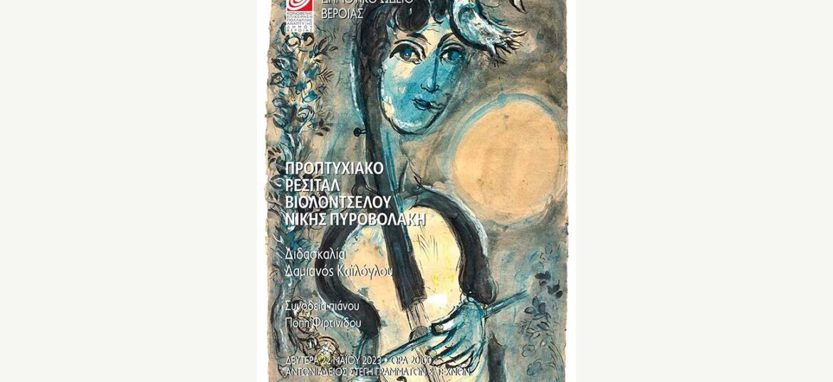 ΔΗΜΟΤΙΚΟ ΩΔΕΙΟ ΤΗΣ ΚΕΠΑ ΔΗΜΟΥ ΒΕΡΟΙΑΣ ΕΚΠΑΙΔΕΥΤΙΚΕΣ ΔΡΑΣΤΗΡΙΟΤΗΤΕΣ 2022- 2023 Την Δευτέρα 22 Μαϊου και ώρα 20.00 στην αίθουσα εκδηλώσεων της Αντωνιάδειου Στέγης Γραμμάτων και Τεχνών η μαθήτρια της τάξης του βιολοντσέλου του Δημοτικού Ωδείου Βέροιας Νίκη Πυροβολάκη … Συνεχίστε να διαβάζετε το Προπτυχιακό Ρεσιτάλ Βιολοντσέλου της Νίκης Πυροβολάκη.