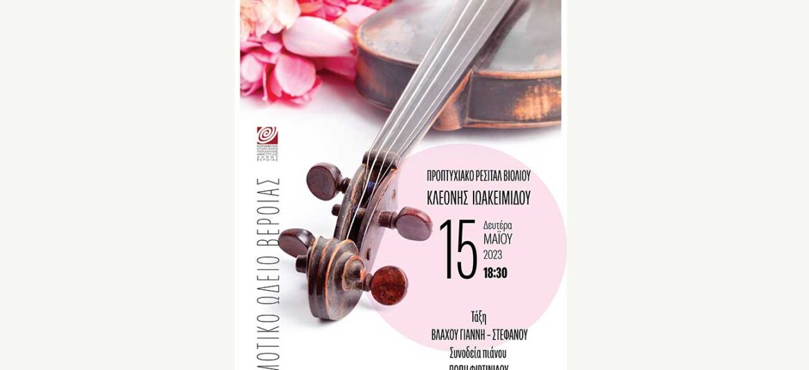 ΔΗΜΟΤΙΚΟ ΩΔΕΙΟ ΤΗΣ ΚΕΠΑ ΔΗΜΟΥ ΒΕΡΟΙΑΣ ΕΚΠΑΙΔΕΥΤΙΚΕΣ ΔΡΑΣΤΗΡΙΟΤΗΤΕΣ 2022- 2023 Προπτυχιακό Ρεσιτάλ Βιολιού της Κλεόνης Ιωακειμίδου Την Δευτέρα 15 Μαΐου, ώρα 6.30, στην αίθουσα της Αντωνιαδείου Στέγης Γραμμάτων και Τεχνών η Κλεόνη Ιωακειμίδου θα παρουσιάσει το προπτυχιακό της … Συνεχίστε να διαβάζετε το Προπτυχιακό Ρεσιτάλ Βιολιού της Κλεόνης Ιωακειμίδου.
