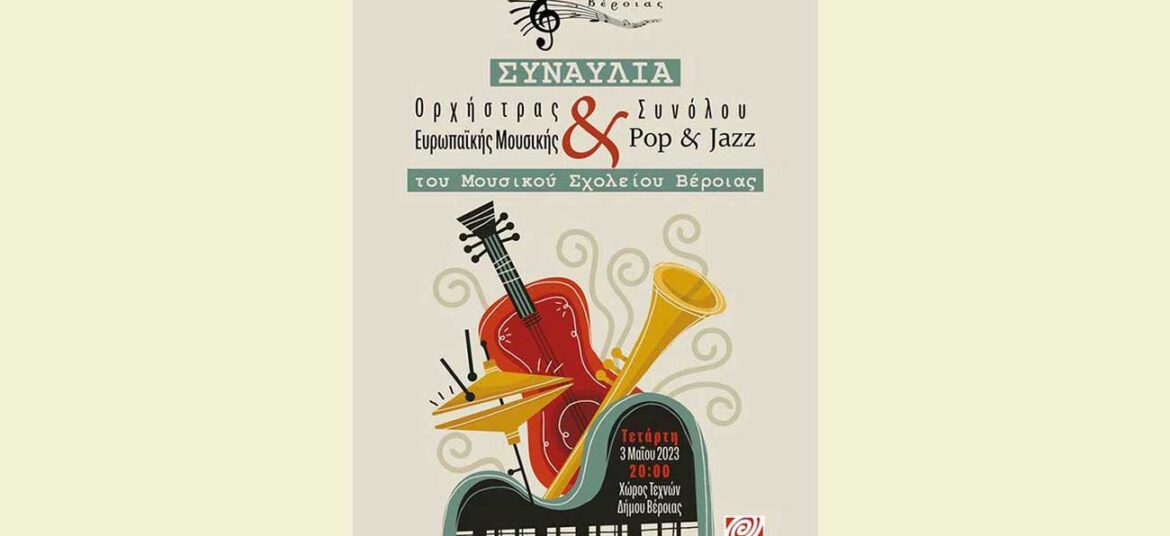 Το Μουσικό Σχολείο Βέροιας προσκαλεί στη συναυλία της Ορχήστρας Ευρωπαϊκής Μουσικής και του Συνόλου Pop & Jazz του Σχολείου, σήμερα, Τετάρτη 3 Μαΐου 2023, στις 8:00 μ.μ. στον Χώρο Τεχνών … Συνεχίστε να διαβάζετε το Εκδήλωση Μουσικού Σχολείου.