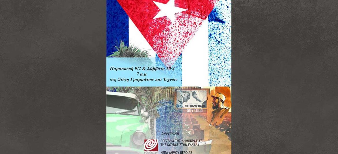 Ο Σύνδεσμος Φιλολόγων Ημαθίας και η ΚΕΠΑ του Δήμου Βέροιας, σε συνεργασία με την Κουβανική Πρεσβεία στην Ελλάδα διοργανώνουν Ημέρες Κουβανικού Κινηματογράφου την Παρασκευή 9 και το Σάββατο 10 Φεβρουαρίου … Συνεχίστε να διαβάζετε το Ημέρες Κουβανικού Κινηματογράφου 9 – 10 Φεβρουαρίου 2024.