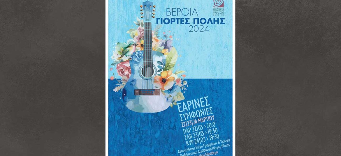 ΒΕΡΟΙΑ ΙΙ ΓΙΟΡΤΕΣ ΠΟΛΗΣ ΙΙ ΕΑΡΙΝΕΣ ΣΥΜΦΩΝΙΕΣ 22, 23, 24/03/2024 Στις επιτυχημένες συναυλίες του κύκλου των Εαρινών συμφωνιών την άνοιξη του 2018, του 2019 και του 2022, που διοργάνωσε το … Συνεχίστε να διαβάζετε το Εαρινές Συμφωνίες.