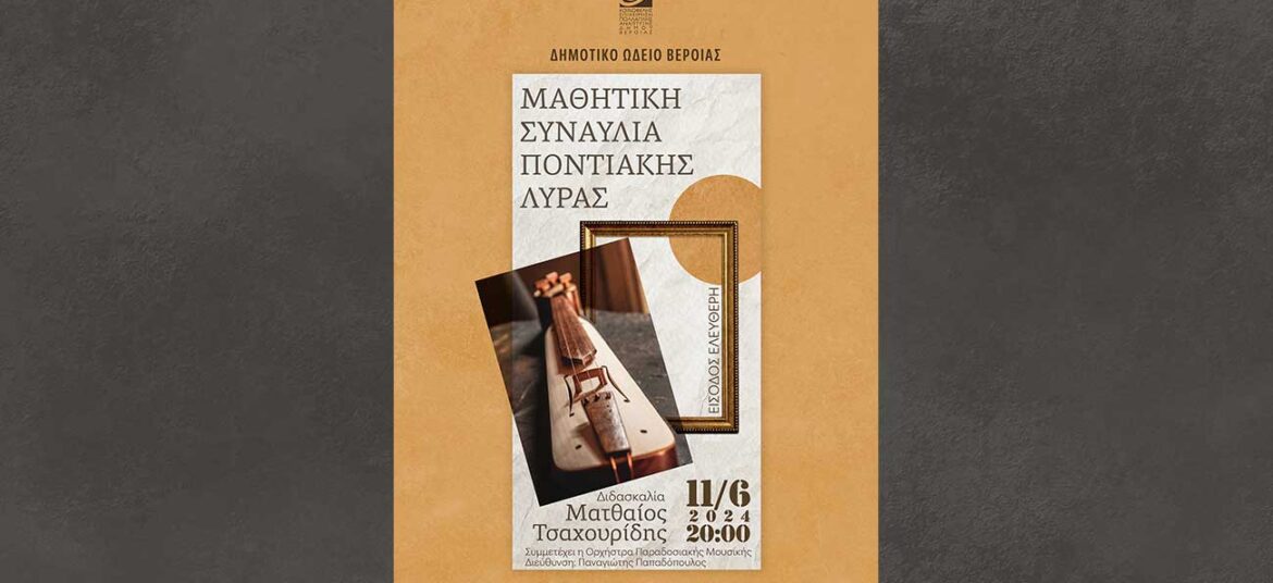 Συναυλία ποντιακής λύρας δίνουν την Τρίτη 11 Ιουνίου 2024, μαθητές του Δημοτικού Ωδείου ΚΕΠΑ Δ. Βέροιας, του τμήματος διδασκαλίας του Ματθαίου Τσαχουρίδη, με την συμμετοχή της ορχήστρας παραδοσιακών οργάνων του … Συνεχίστε να διαβάζετε το Συναυλία ποντιακής λύρας στη Στέγη.