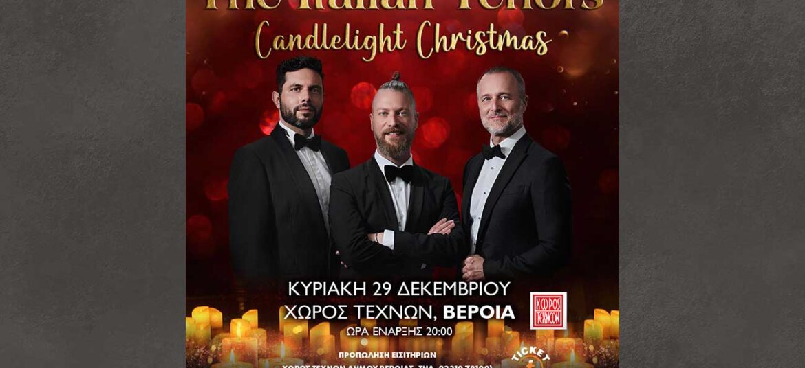 Μια μουσική πινελιά στο εορταστικό πνεύμα των Χριστουγέννων και της Πρωτοχρονιάς βάζουν οι αγαπημένοι του ελληνικού κοινού “The Italian Tenors”, που έρχονται για μία και μοναδική εμφάνιση με το Candlelight … Συνεχίστε να διαβάζετε το The Italian Tenors – A Touch of Candlelight Christmas.