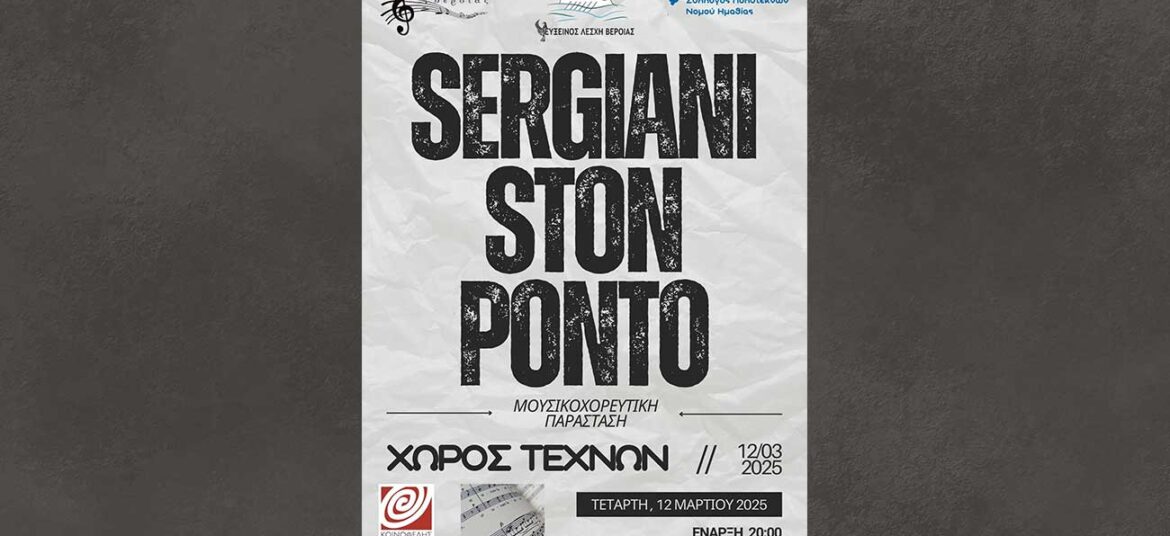 «Σεργιάνι στον Πόντο», μουσικοχορευτική παράσταση στο Χώρο Τεχνών Ο Σύλλογος Πολυτέκνων Ν. Ημαθίας, το Μουσικό Σχολείο Βέροιας με τα παραδοσιακά του σύνολα και η Εύξεινος Λέσχη Βέροιας, παρουσιάσουν την μουσικοχορευτική … Συνεχίστε να διαβάζετε το «Σεργιάνι στον Πόντο», μουσικοχορευτική παράσταση στο Χώρο Τεχνών.