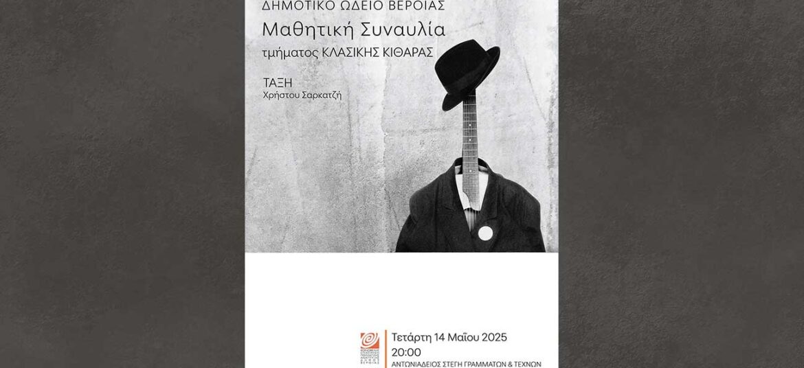 Το δημοτικό Ωδείο της ΚΕΠΑ Δ. Βέροιας και η τάξη κλασσικής κιθάρας του Χρήστου Σαρκατζή, παρουσιάζουν την καθιερωμένη ετήσια συναυλία της Τάξης, με έργα του κλασσικού ρεπερτορίου άλλα και διασκευές … Συνεχίστε να διαβάζετε το Μαθητική συναυλία κλασσικής κιθάρας στη Στέγη.