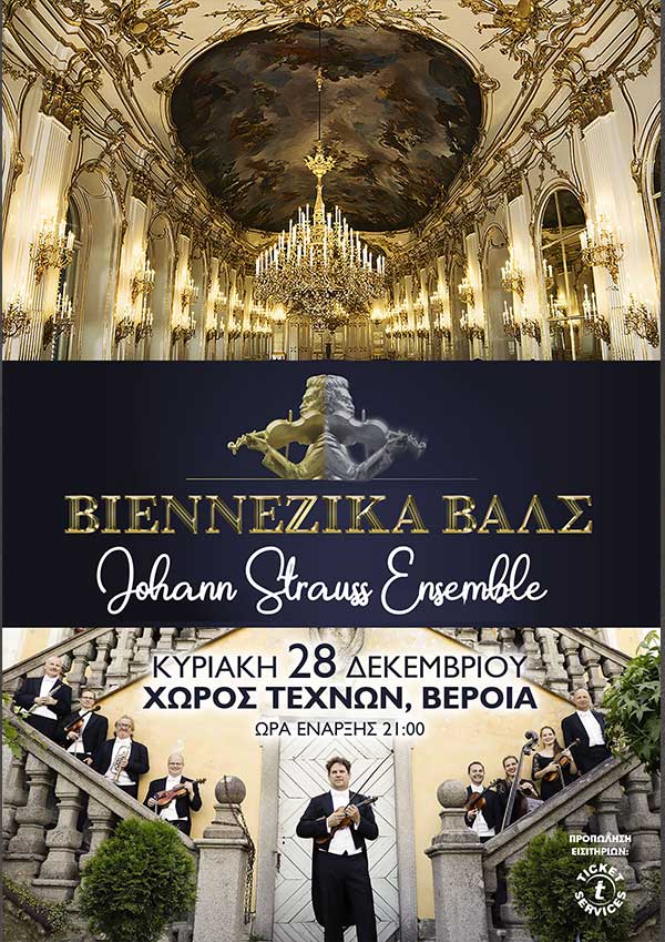 Με ανακοίνωσή της, η εταιρεία Παραγωγής της συναυλίας με την Ορχήστρα Johann Strauss Ensemble (βιεννέζικα βαλς), που είχε προγραμματιστεί για τις 28 Δεκεμβρίου 2025 στο Χώρο Τεχνών, ενημερώνει ότι βρίσκεται στη δυσάρεστη θέση να ακυρώσει τη συναυλία στη Βέροια και σε άλλες πόλεις, για τεχνικούς λόγους που αφορούν στην περιοδεία. Τα χρήματα των εισιτηρίων που έχουν πωληθεί ηλεκτρονικά, θα επιστραφούν από την πλατφόρμα στους αγοραστές τους, ενώ όσα διατέθηκαν από τον Χώρο Τεχνών, θα επιστραφούν άμεσα (Γραμματεία, 3ος όροφος).