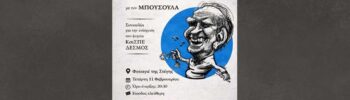 Στον μεγάλο στιχουργό Λευτέρη Παπαδόπουλο, είναι αφιερωμένη η συναυλία του μουσικού σχήματος ΜΠΟΥΣΟΥΛΑΣ, για την στήριξη του ΚοιΣΠΕ Ημαθίας “ΔΕΣΜΟΣ”, με τη συμμετοχή και άλλων καλλιτεχνών της Βέροιας. Η εκδήλωση … Συνεχίστε να διαβάζετε το Συναυλία του ΜΠΟΥΣΟΥΛΑ για τον ΚοιΣΠΕ Ημαθίας “Δεσμός” στο Φουαγιέ της Στέγης.